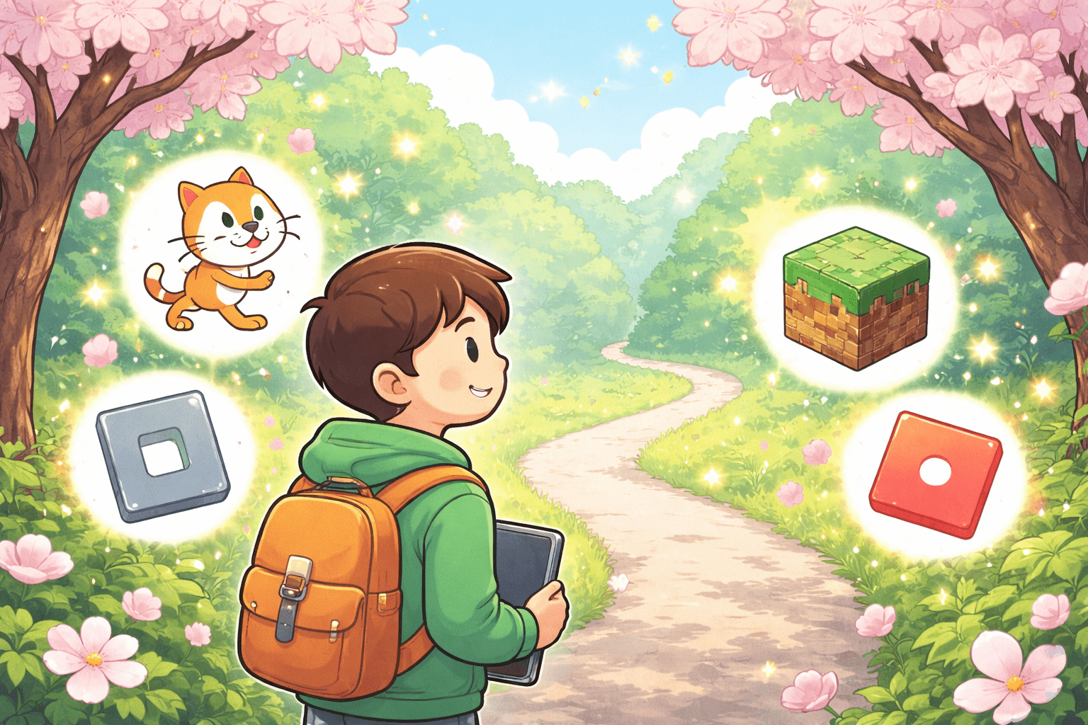 スクラッチは学校でも触れる機会があり、マインクラフトやロブロックスも多くの子どもたちに人気があります。しかし、プログラミングを学ぶことで、それらの見え方が変わります。