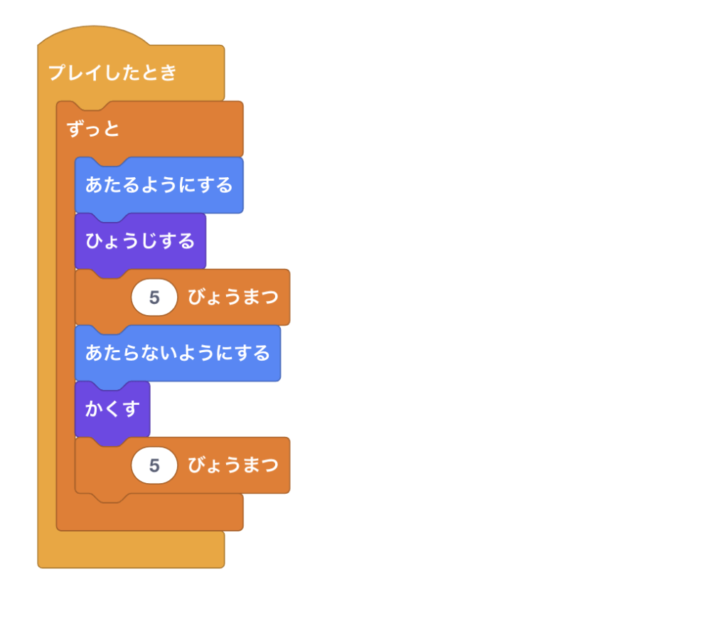 ロブクラッチでは、Scratchと同様のビジュアルプログラミング形式を採用しています。日本語で書かれたブロックをドラッグ&ドロップするだけで複雑なゲームロジックを構築することができます。